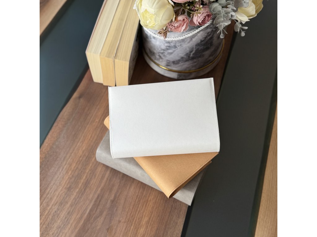 Obal je vyrobený z omyvatelného kraftového papíru. Jedná se o velmi pevný a pružný materiál, který lze prát i šít. Ve vodě se nesráží, nemění barvu ani se nerozpouští. Díky obsahu syntetického latexu je odolný a příjemný na dotek. Vypadá jako kůže, ale neobsahuje žádné složky živočišného původu – proto je často označován jako veganská kůže. Působí moderně, přírodně a ekologicky a je oblíbený v módě i doplňků. Po vyprání a usušení doporučujeme přežehlit na rovném podložce pod ručníkem.
